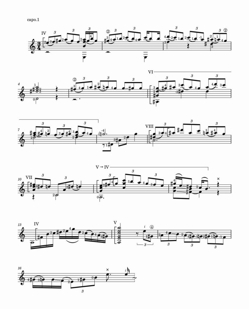 という訳で、今回はこのソレアの冒頭部分を譜面にしてみまっした。こんな感じでっす。