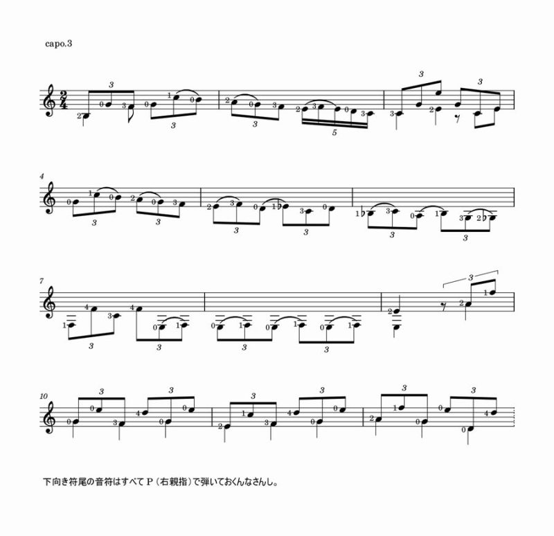 な訳で、ニーニョ・リカルド大先生の音源の冒頭部分を採譜してみまっした。こんな感じでっす。