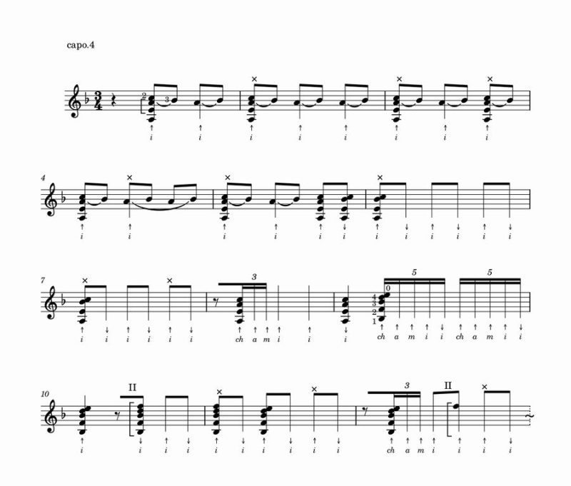今回はまず冒頭部分を少しだけ採譜してみまっした。こんな感じでっす。
