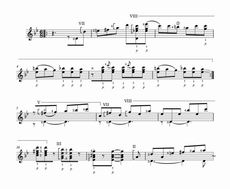 という訳で、“カシルダ”の冒頭部分を少しだけ譜面にしまっした。アルバムではCapo.1、ライブ動画ではCapo無しで演奏しちょりまっすが、アルバム・バージョンでっす。(ファルセータはほとんど変わりもさん)