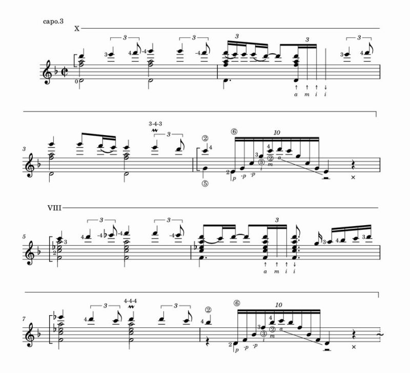 で、この“メンティデーロのティエントス”は初っ端から高音域のメロディーがCapo.3で奏でられているため、大変美しくも儚い印象がございまんするす。