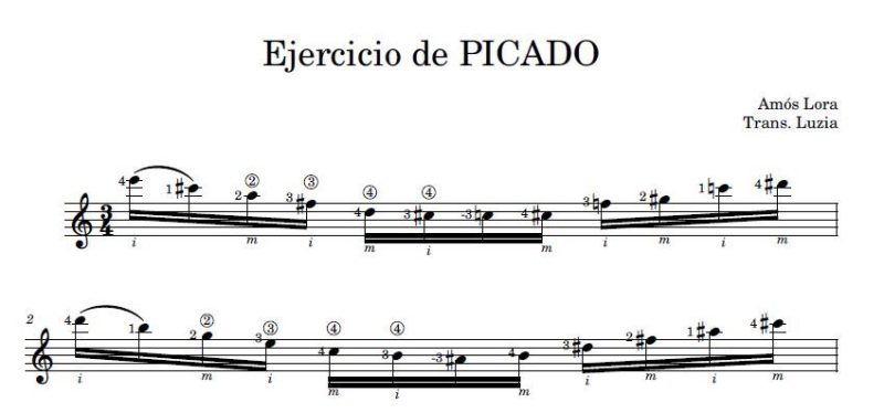 つ~訳で、旧愚ブログで冒頭の動画で紹介されているアモス君の“Ejercicio de picado(ピカードのエクササイズ)”を採譜したものをご紹介しまっした。