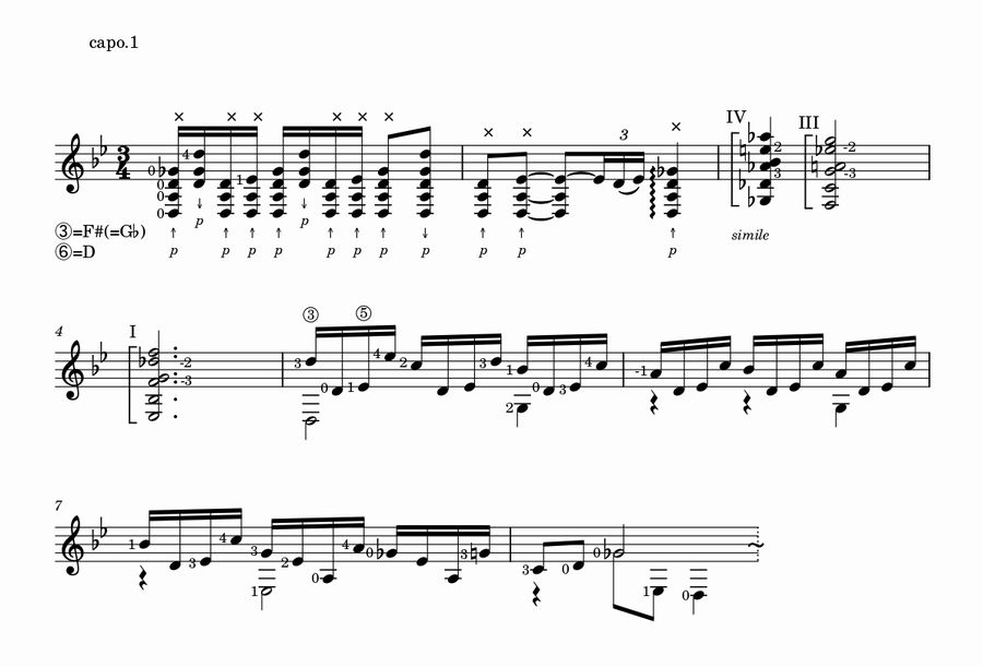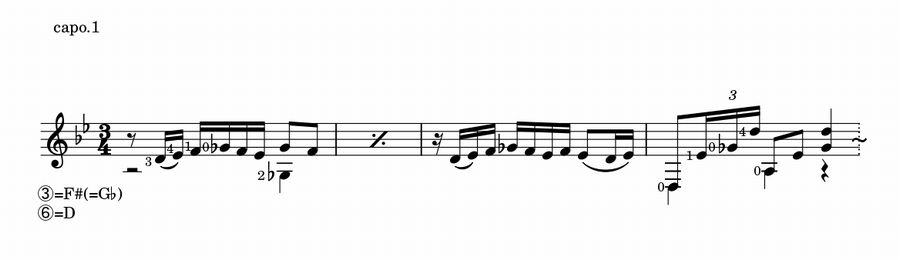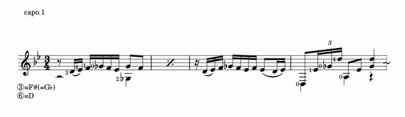 このソレアは⑥=D、③=F#という、通常フラメンコ・ギターではロンデーニャという形式で使用される変則チューニングで演奏されちょりまっす。
