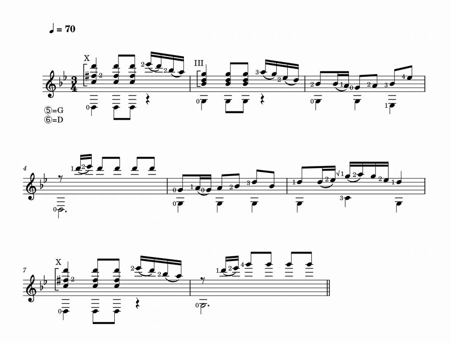 という訳で、イントロ部分をソロ・ギターにアレンジしてみまっした。原調のG minor(ト短調)のママでっす。