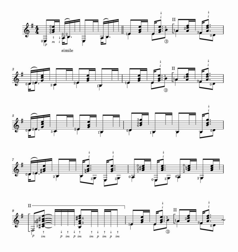という訳で、もし明日、どうしてもこの曲を弾かなければならぬという想定でほんのサワリ部分をソロ・ギターにアレンジしてみまっした。楽譜はこんな感じでっす。