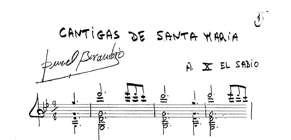 Alfonso X el Sabio(アルフォンソ10世)編纂~Narciso Yepes(ナルシソ・イエペス)編/“Cantigas de Santa Maria(聖母マリア頌歌集)”(PDF)※手稿譜