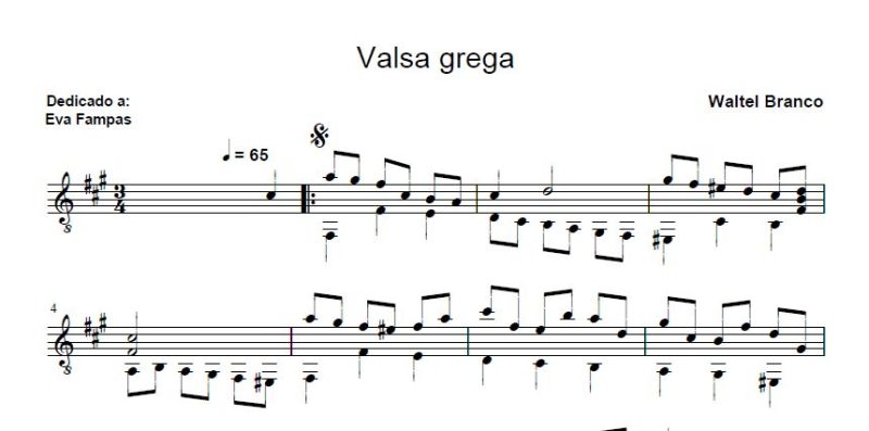 ヴァルテル・ブランコはクラシック・ギター演奏にも長けた方だったそうで、彼の作品にギリシャのギタリスト、Eva Fampas(エヴァ・ファンパス)1に捧げた美しいワルツ、“Valsa Greca Para Eva(エヴァのためのギリシャ風ワルツ)”という作品がござんす。
