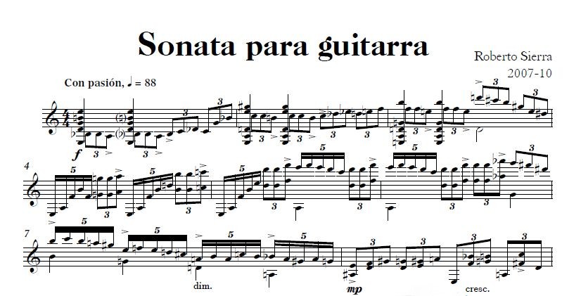 ロベルト・シエラの作品は多岐に渡りまっすが、ギター作品もいくつかござんして、この“ギターのためのソナタ”は近年、ギターコンクールの自由曲で演奏する方が増えちょりまっする。