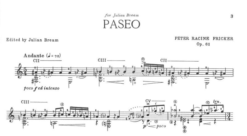 さて、冒頭の音源はエゲレスのギタリスト、Michael Butten(マイケル・バッテン)による同国の作曲家、Peter Racine Fricker(ピーター・ラシーヌ・フリッカー)がクラギの大巨匠、Julian Bream(ジュリアン・ブリーム)のために書いた唯一のギターソロ作品、“Paseo Op.61(パセオOp.61)”でっす。