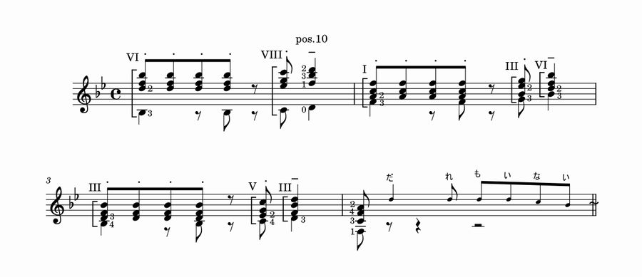 原曲キーはB♭major(変ロ長調)でっすが、このままでもなんとか弾けまっす。こんな感じでっす。