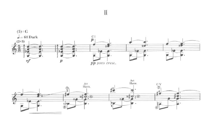 で、オイラも何度か楽譜に目を通して弾いてみたことがございまっすが、他の武満ギター作品と比較した場合、運指が詳細に付され(もちろん、ジュリアン・ブリームによる運指)、また、作品全体が押弦的に無理な所がなく、もし、出版譜がオリジナルのままだったとしたら奇跡的かも。