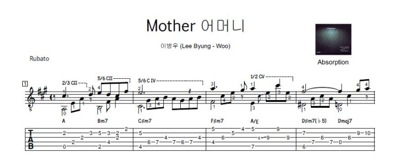 冒頭の音源は韓国の優れたギタリストで、映画音楽家としても夙に著名なLee Byung-woo(李丙雨、이병우、イ・ビョンウ)さんのアルバム、“Absorption”に収録されている何とも言えず美しいギター作品、“Mother”でっす。