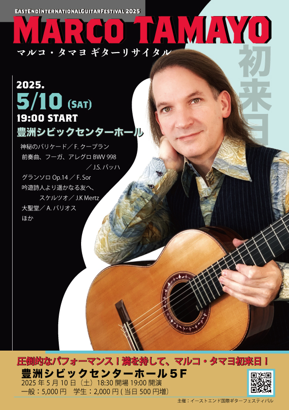 さて、イーストエンド国際ギターフェスティバルの招聘でキューバ出身の名手、Marco Tamayo(マルコ・タマヨ)が、来日公演をされまっすね。