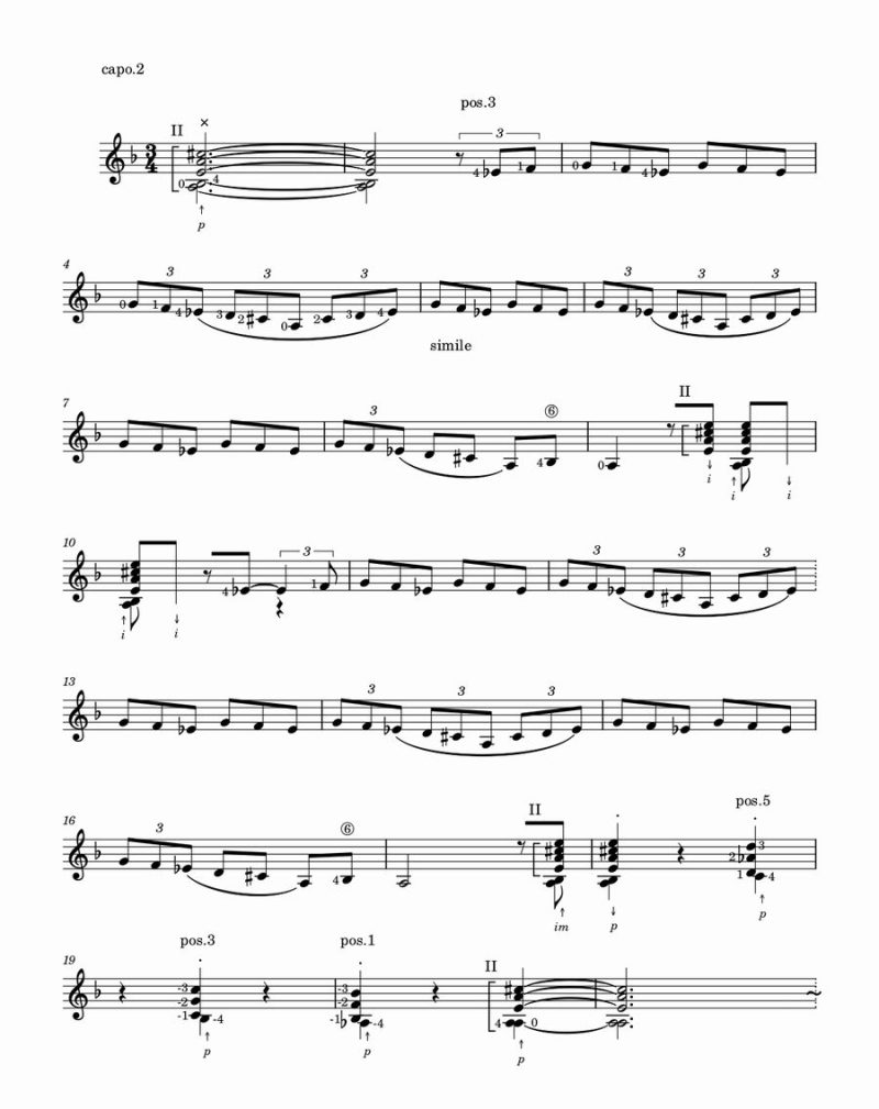 今回は冒頭部分を少しだけ採譜してみまっした。こんな感じでっする。