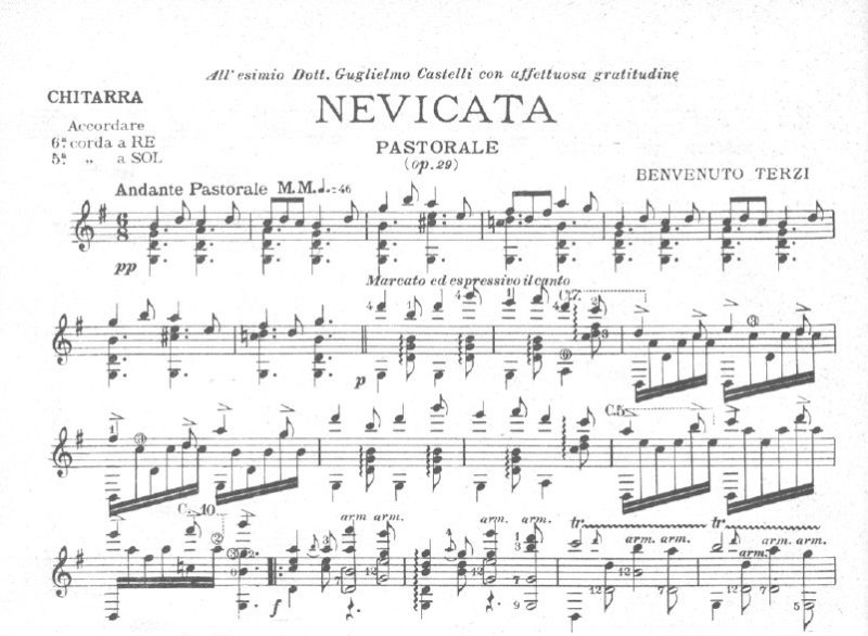 さて、冒頭の動画はお馴染みスペインの名匠、María Esther Guzmán(マリア・エステル・グスマン)によるイタリアのギタリスト・コンポーザー、Benvenuto Terzi(ベンヴェヌート・テルツィ、1892-1956)による“Nevicata Op.29”の演奏です。