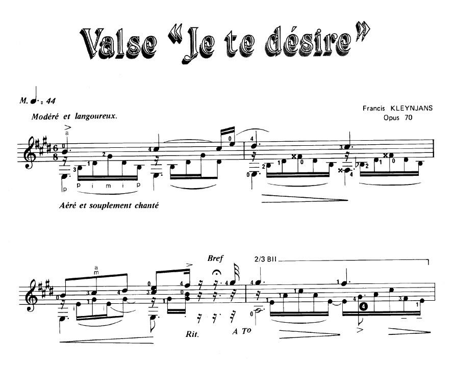 Francis Kleynjans(フランシス・クレンジャンス)/Valse “Je Te Desire” Op.70(ワルツ“あなたが欲しい” Op.70)(PDF)