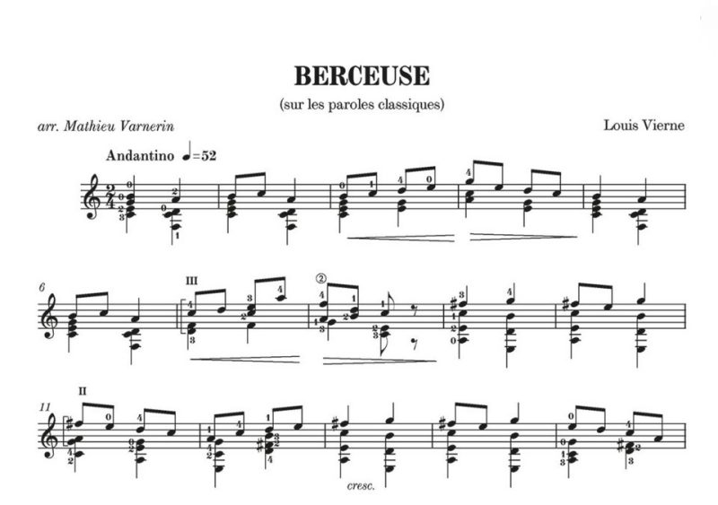 で、ワタクシが知る限りこの“子守歌”をギターソロ・アレンジで演奏、録音をしているのはフランスのギタリスト、Mathieu Varnerin(マシュー・ヴァルヌラン)だけかと思われます。
