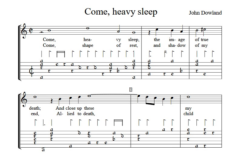 さて、冒頭の演奏動画はダウランドの“The Firste Booke of Songes or Ayres(歌曲集第1巻)”に収載されている、“Come,heavy Sleep(来たれ、深き眠りよ)”でございます。