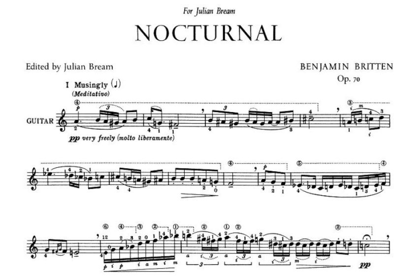 で、クラギの方はもれなくご存知の通り、この曲を主題にしたギターのための変奏曲と言えばイギリスの大作曲家、Benjamin Britten(ベンジャミン・ブリテン)が、Julian Bream(ジュリアン・ブリーム)のために書いた“Nocturnal after J.Dowland Op.70(ジョン・ダウランドに基づくノクターナル Op.70)”でございますよね。