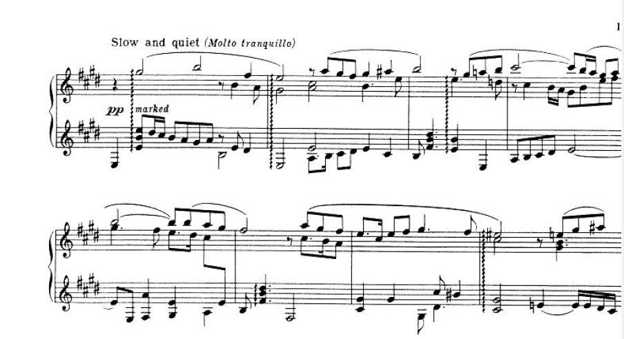 第1変奏と主題の楽譜冒頭部分はこんな感じです。