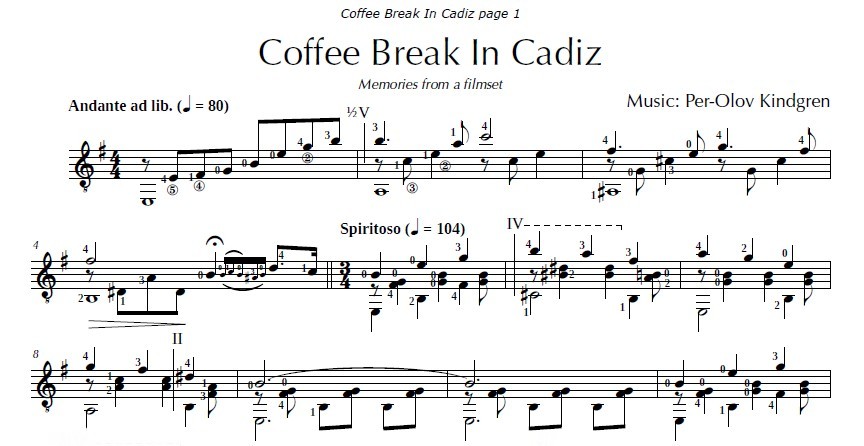 さて、冒頭の動画はスウェーデンのギタリスト・コンポーザー、Per-Olov Kindgren(ペル – オロフ・キンドグレン)の“Coffee Break in Cádiz”(カディスでコーヒーブレイク)の自演です。