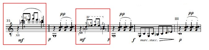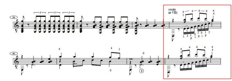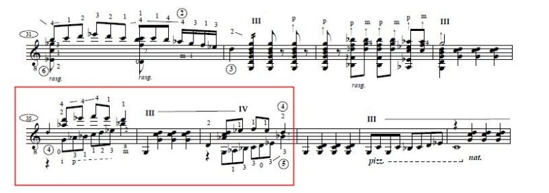 イエペス先生の音源を聴いてさすがだなぁと思ったのが、下記原曲のスコアの赤い□部分のパッセージでっす。