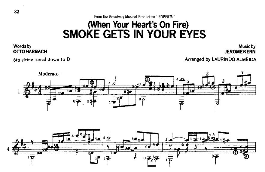 Jerome Kern(ジェローム・カーン)~Laulindo Almeida(ローリンド・アルメイダ)編/Smoke Gets In Your Eyes(煙が目にしみる)(PDF)