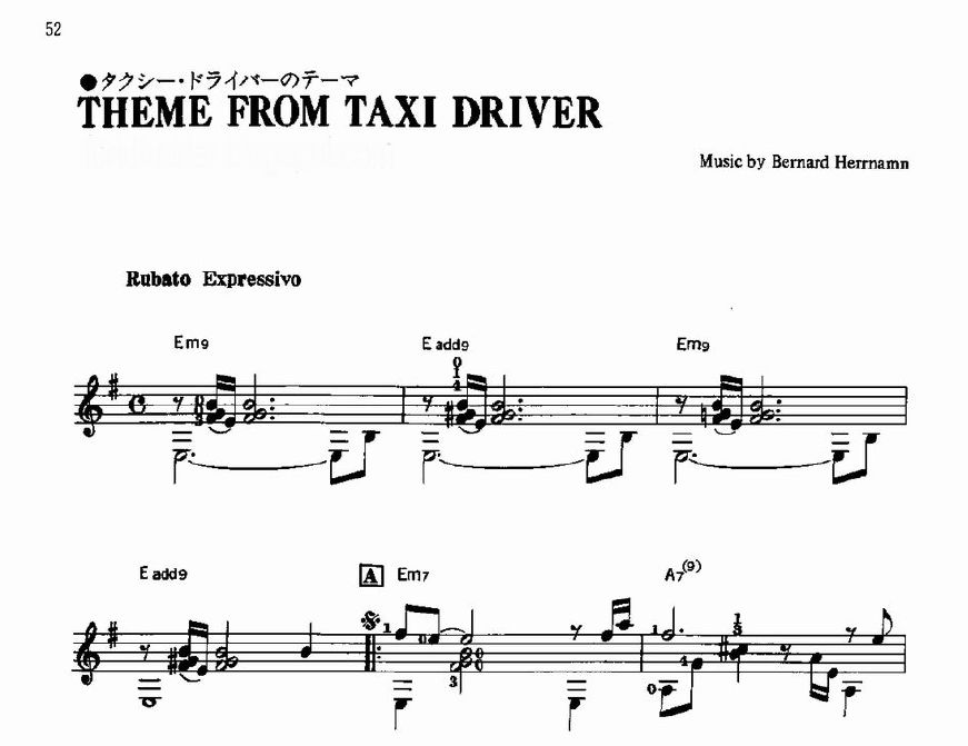 Bernard Herrmann(バーナード・ハーマン)~江部賢一・編/Theme from Taxi Driver(タクシードライバーのテーマ)(PDF)