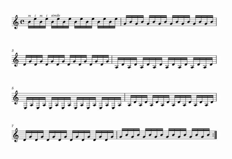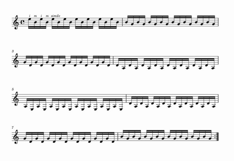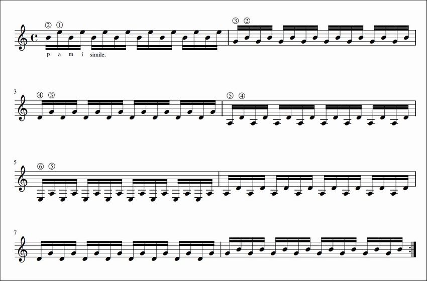んで、ちょっと気が向いた時は以前ご紹介した逆指トレモロ運指(?)による開放弦のパッセージを延々と弾くのでっすが、
